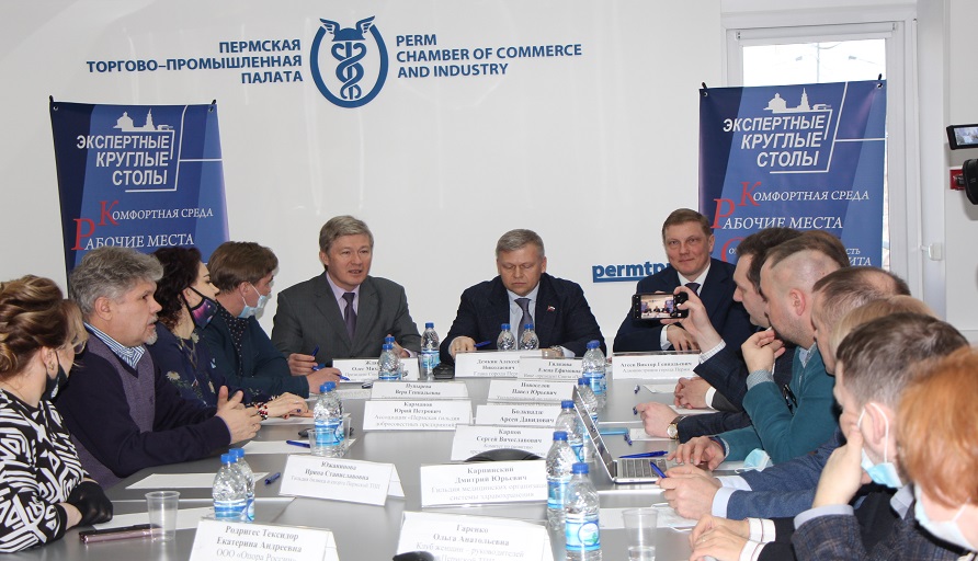 В Пермской ТПП собрались представители администрации город Перми, руководители сообществ, действующих при Палате, бизнесмены, руководители ТПП, Деловой России и Гильдии добросовестных предприятий.