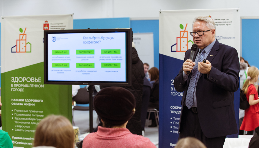 Президент Пермской ТПП Вячеслав Белов открывая тематическую сессию, рассказал участникам об инициативах проекта «Здоровье в промышленном городе», направленного на формирование системы мотивации граждан к здоровому образу жизни, а также сообщил, на что ребятам стоит обратить внимание при выборе будущей профессии и поддержание здоровья смолоду на долгие годы здесь находится далеко не на последнем месте.