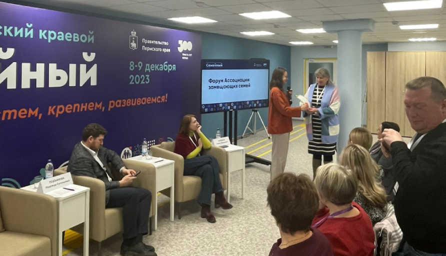 Семья Собакиных – участники ежегодного краевого конкурса «Лучшая замещающая семья Пермского края», но в 2023 году не вошли в тройку победителей. «Солнечный круг» и фонд помощи детям Пермской ТПП учредили особый приз: «Самая счастливая замещающая семья Пермского края». В этом году для награждения была выбрана семья Собакиной Людмилы Владимировны и Сергея Васильевича, которые воспитали 10 приемных детей. В качестве подарка им был вручен подарочный сертификат в магазин бытовой техники.