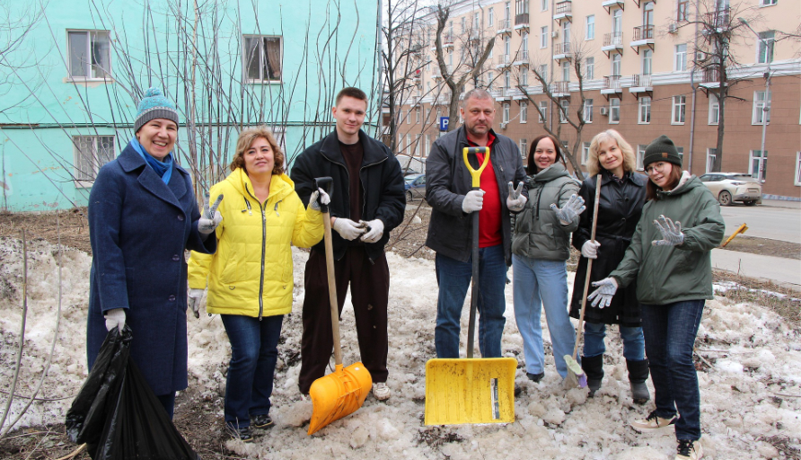 Кроме того, участники субботника раскидали еще не растаявший снег, что поможет ускорить таяние и сделает пространство вокруг здания более аккуратным.